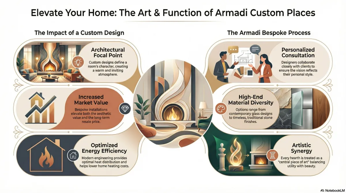 A custom fireplace can dramatically transform the ambiance of any home, acting as a centerpiece that combines both functionality and aesthetic appeal. At Armadi Home, we specialize in crafting bespoke fireplaces that not only enhance the beauty of your living space but also reflect your personal style and needs. The inclusion of a custom fireplace in your home design offers a unique opportunity to incorporate innovative design elements and high-quality materials that make your space truly stand out.